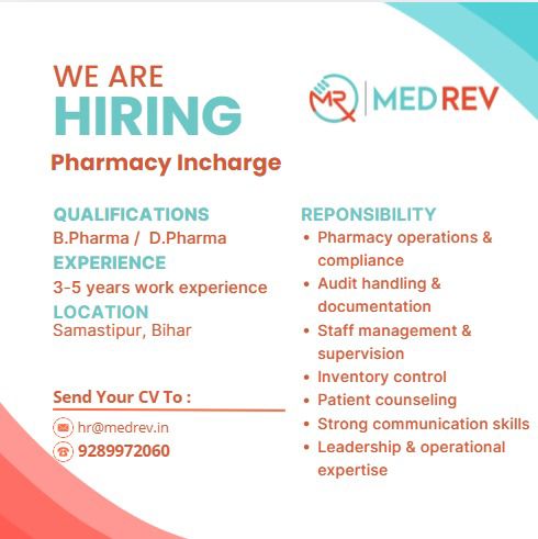 - Primary: Pharmacy Incharge Job in Samastipur, Bihar | MedRev Healthcare Recruitment