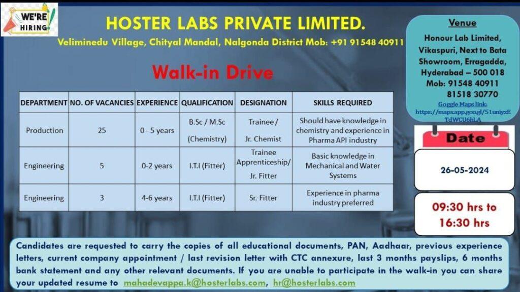 HOSTER LABS Walk-in Drive for Production & Engineering (0-6 years) department on 26-05-2024