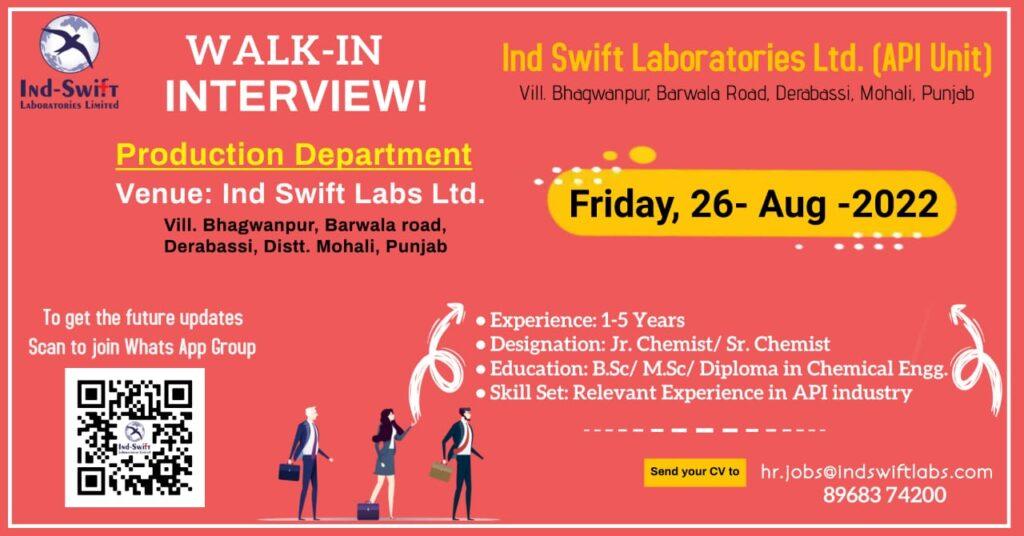 Ind Swift Laboratories Ltd. (API Unit) Walk In Interview for Jr. Chemist/ Sr. Chemist- Department on 26th Aug 2022
