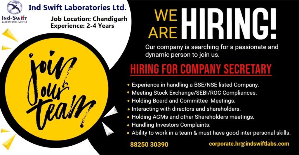Ind-Swift-Laboratories Ltd. is hiring for Company Secretary at Chandigarh