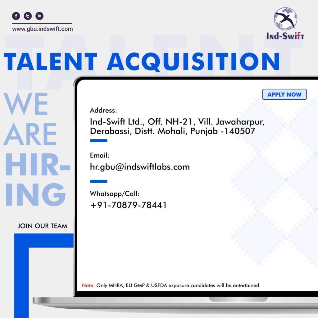 Note: Only MHRA, EU GMP & USFDA exposure candidates will be entertained.