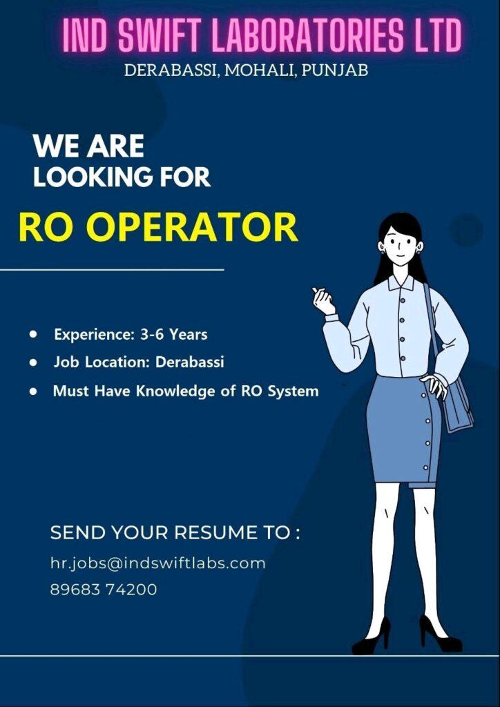 Ind Swift Labs Ltd. opening for RO Operator in Engineering department.