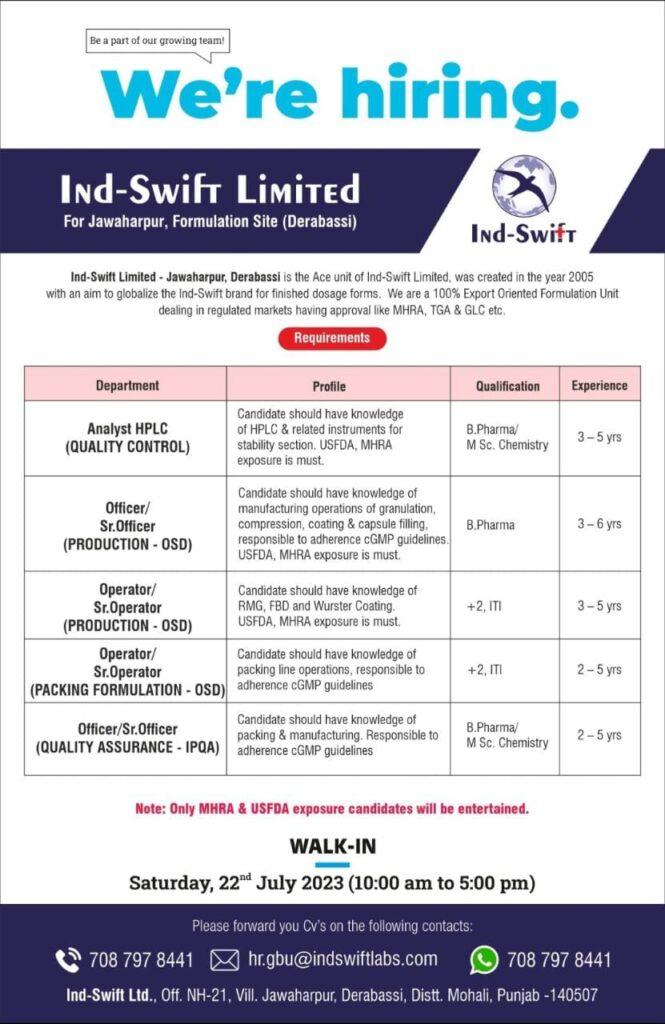 Note: Only MHRA&USFDA exposure candidates will be entertained.