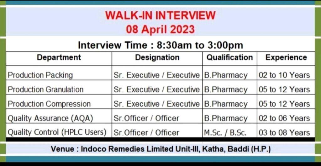 Indoco Remedies – Walk In Interview for Production, Packing, QA, QC on 08 April 2023