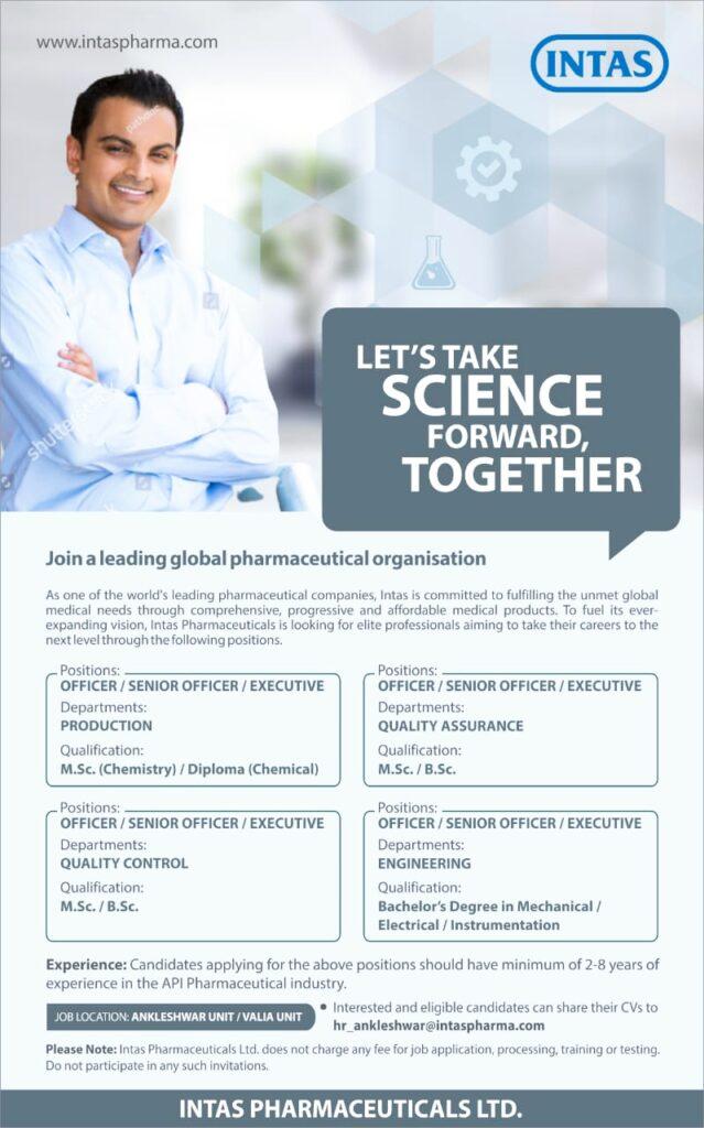 Please Note: Intas Pharmaceuticals Ltd. does not charge any fee for job application, processing, training or testing. Do not participate in any such invitations.
