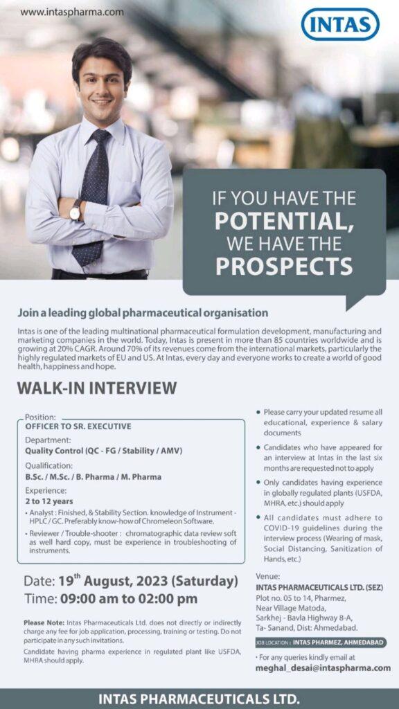 JOB LOCATION: INTAS PHARMEZ, AHMEDABAD