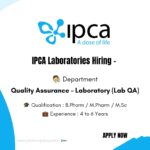 Qualification: B.Pharmacy / M.Pharmacy / M.Sc.