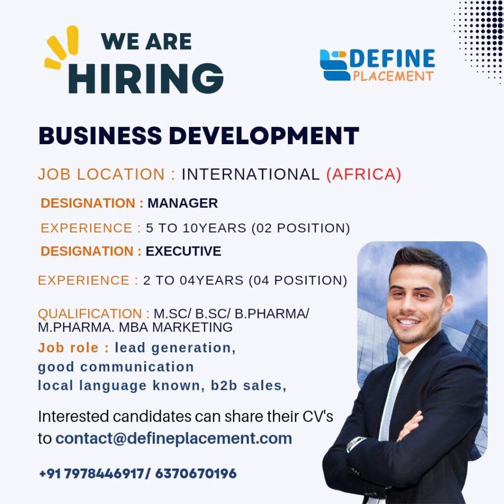 International Business Development candidate required for Manager/ Executive Position (Africa)