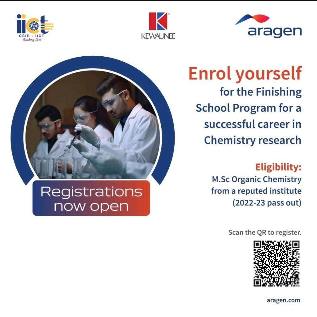 Kewanee & Aragen Life Sciences are partnering with Indian Institute of Chemical Technology Hyderabad (IICT), for finishing school program to develop good entry level chemists for industry. Interested aspirants can walk in to our Mallapur facility on Saturday, 18th May, 2024.