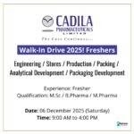 This walk-in drive is an excellent opportunity for candidates looking to build a strong career in pharmaceutical manufacturing and research. Interested applicants are encouraged to attend with all required documents for on-spot evaluation.