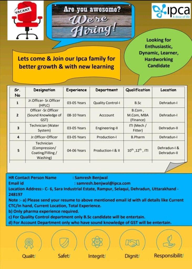 Ipca hiring for QC, Acccount, Production & Engineering department || Apply Now