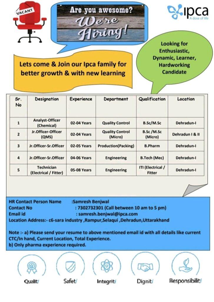 Lets come & Join our Ipca family for better growth & with new learning