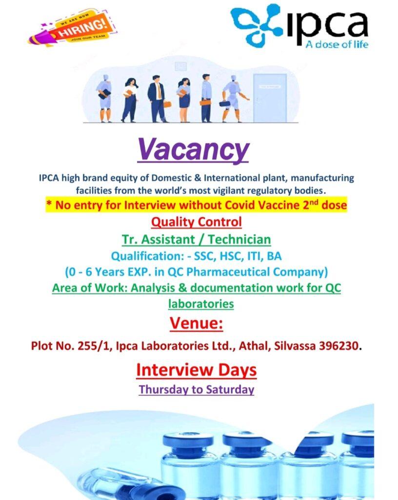 Ipca Laboratories Ltd. Walk In Interview for Quality Control department|| Freshers & experience