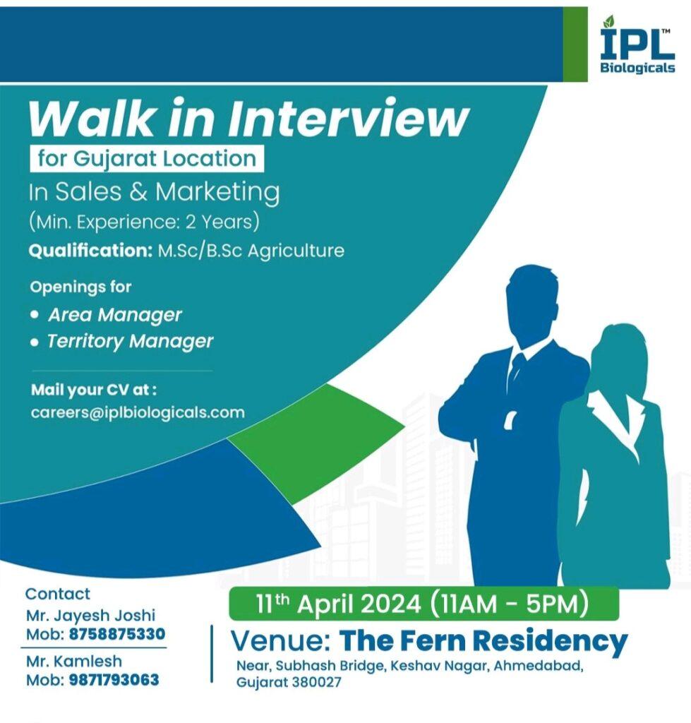 IPL Biologicals Limited walk in drive for Sales & Marketing on 11th April 2024