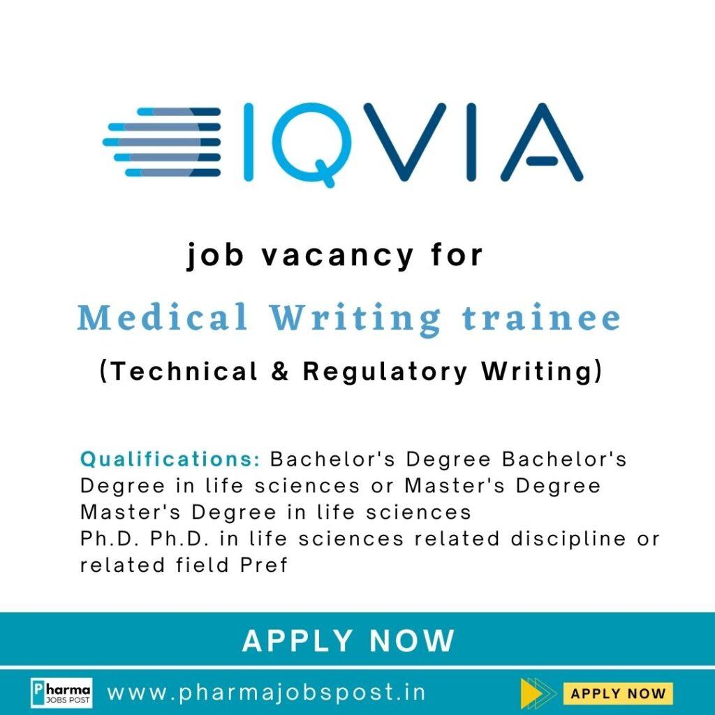 IQVIA – Job vacancy for Medical Writing trainee (Technical & Regulatory Writing) Apply Now