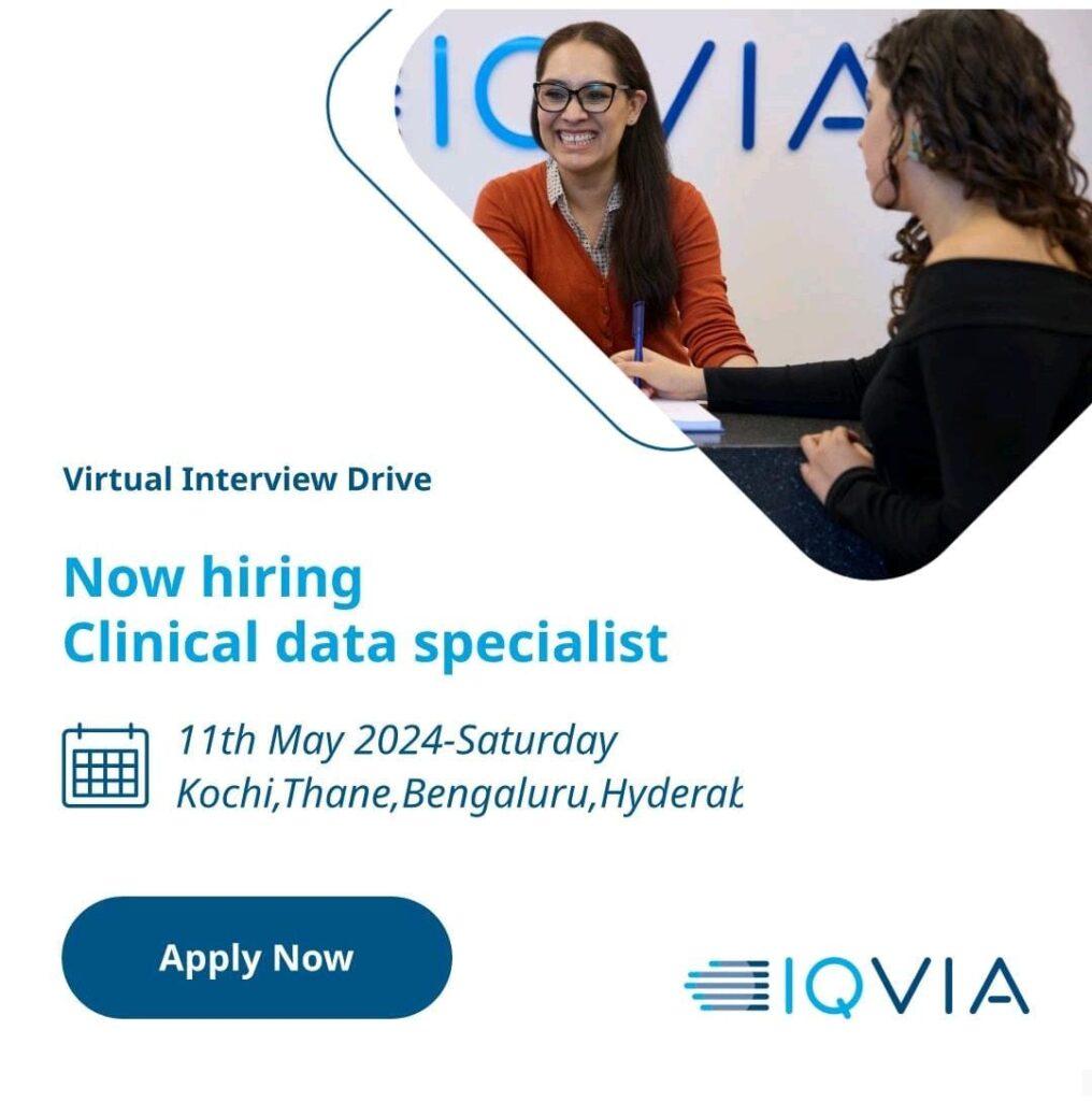IQVIA Virtual Interview Drive for Clinical data management Professionals on 11th May 2024