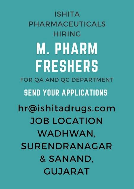 ISHITA PHARMACEUTICALS HIRING M. PHARM FRESHERS FOR QA AND QC DEPARTMENT