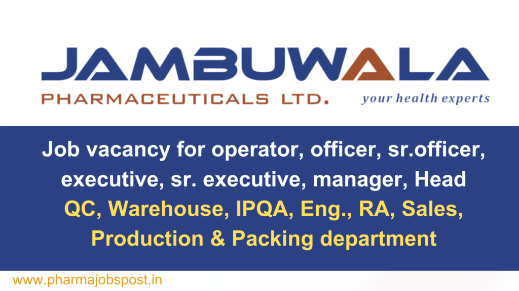 JAMBUWALA PHARMACEUTICALS Hiring for QC, Warehouse, IPQA, Eng., RA, Sales, Production & Packing department