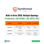 This is an excellent opportunity for experienced professionals as well as freshers (for selected roles) to join a growing pharmaceutical organization.