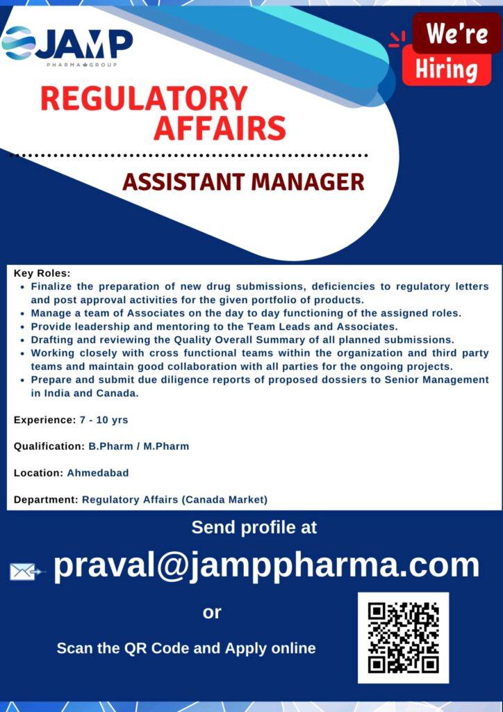 JAMP India Pharmaceuticals hiring for Regulatory Affairs (Canada Market)