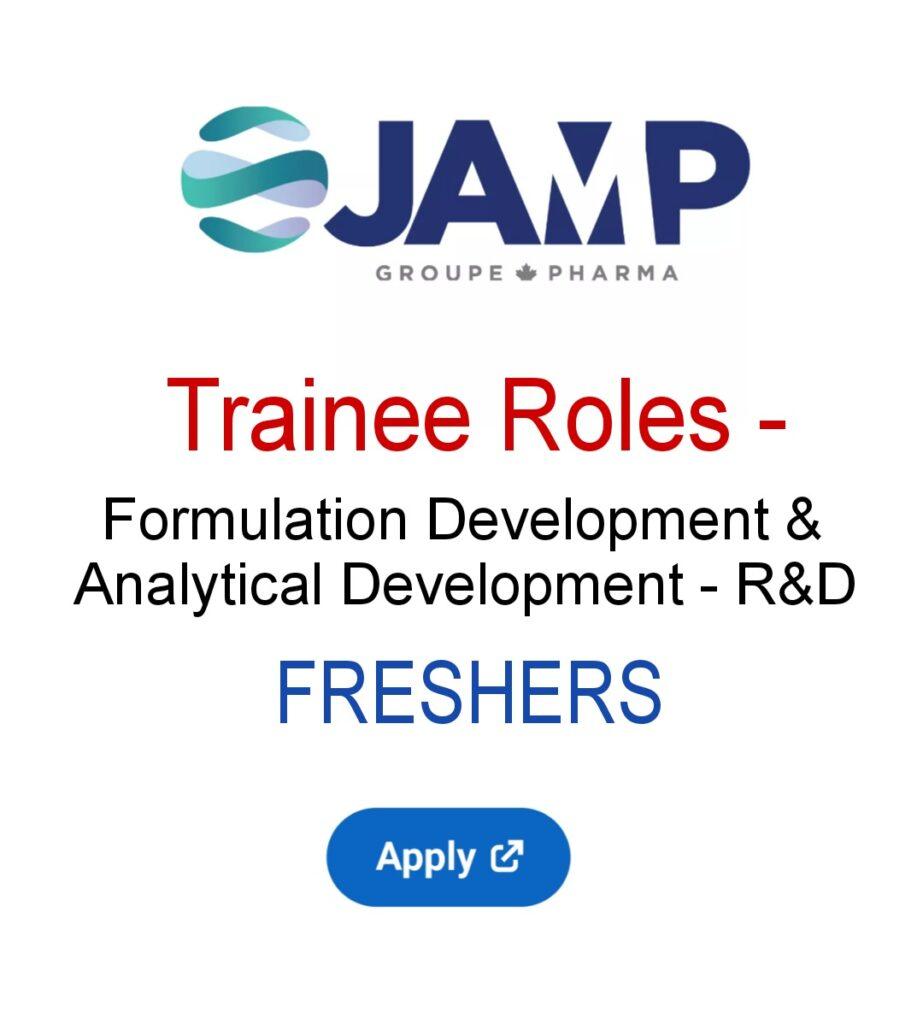 We are hiring freshers at Jamp Pharma – R & D Center Hyderabad