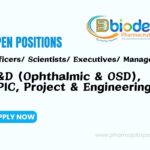 Qualification: B.Sc. / M.Sc. / B.Pharm / M.Pharm