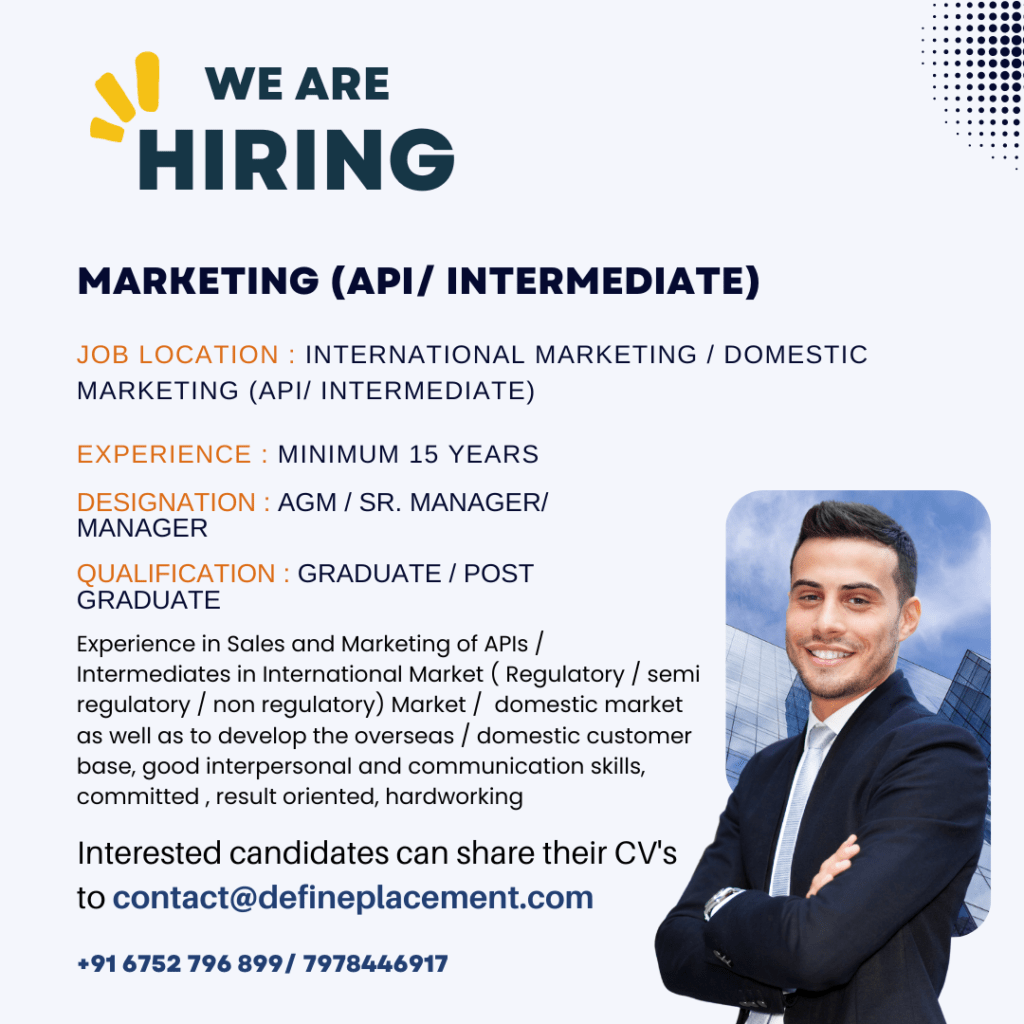 AGM / Sr. Manager/ Manager – International Marketing / Domestic Marketing (API/Intermediate)
