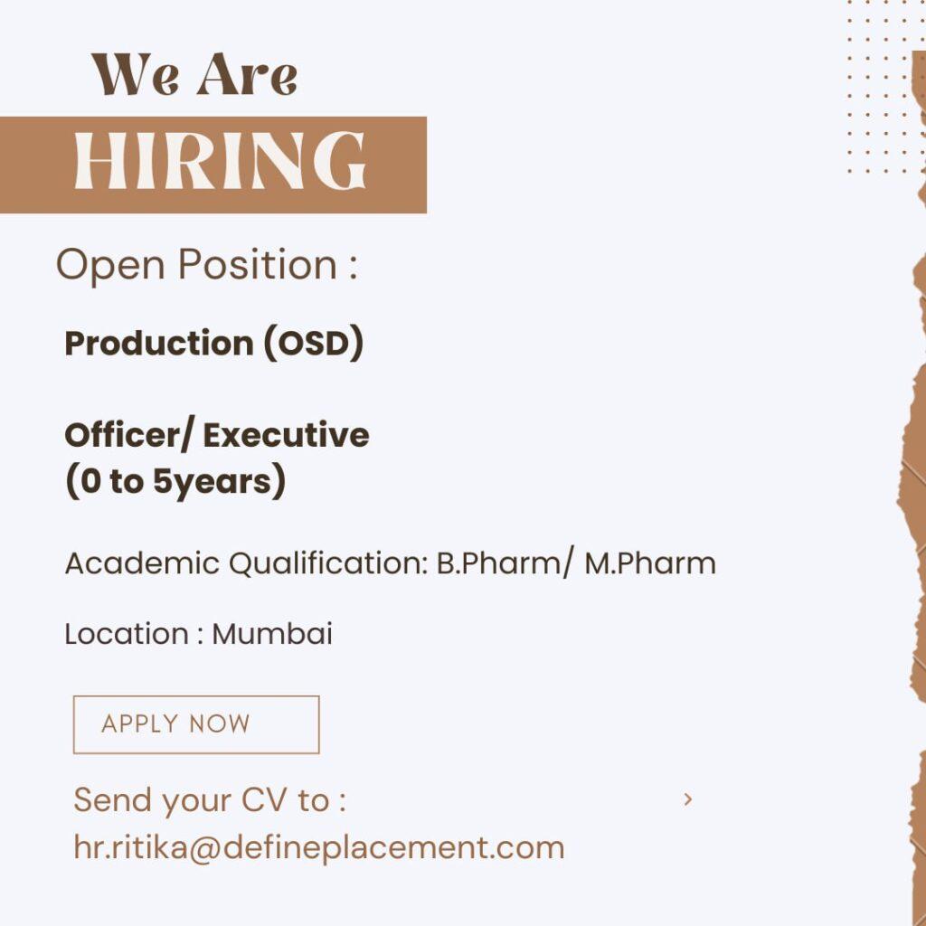 Job vacancy for Freshers & Experience in Production (OSD) department at Mumbai