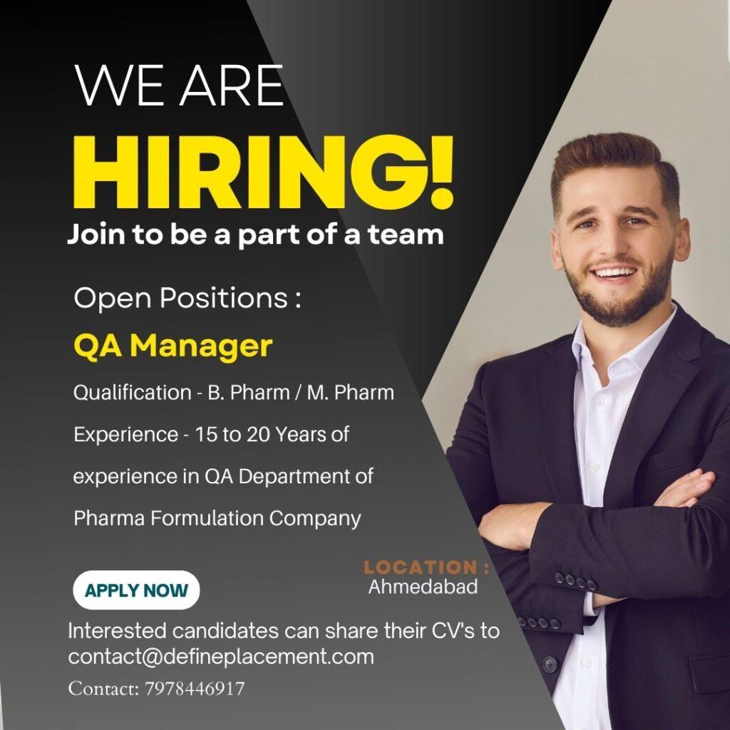 Job vacancy for QA Manager at Ahmedabad location– Apply Now