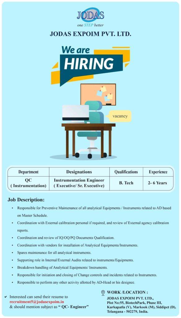 JODAS EXPOIM- Hiring for QC (Instrumentation) apply now