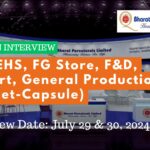 To be part of organisation success journey, we are looking for pharmaceutical professionals with proven track record, from regulatory manufacturing facilities, Interested may walk in for interaction with our technical team for following positions.