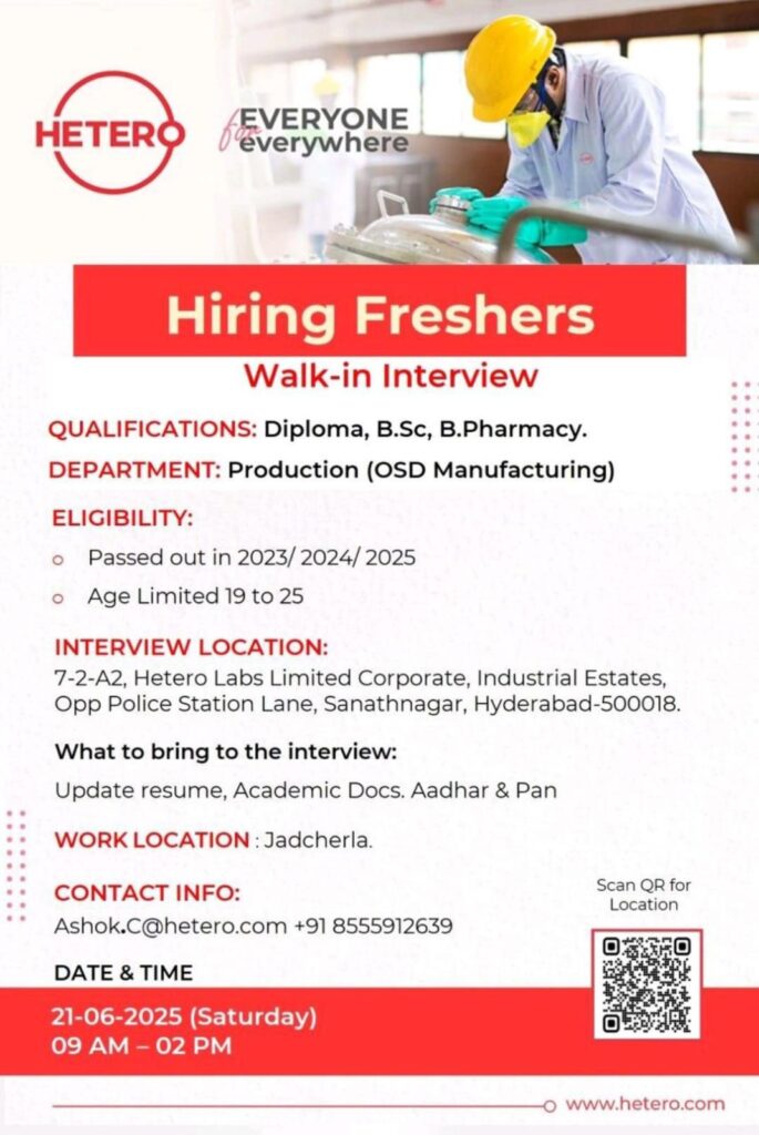 Hiring Freshers Walk-in Interview