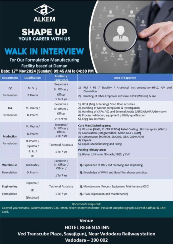 Qualification: M. Pharm/B. Pharm, D. Pharm/Diploma/ B.Sc./ ITI