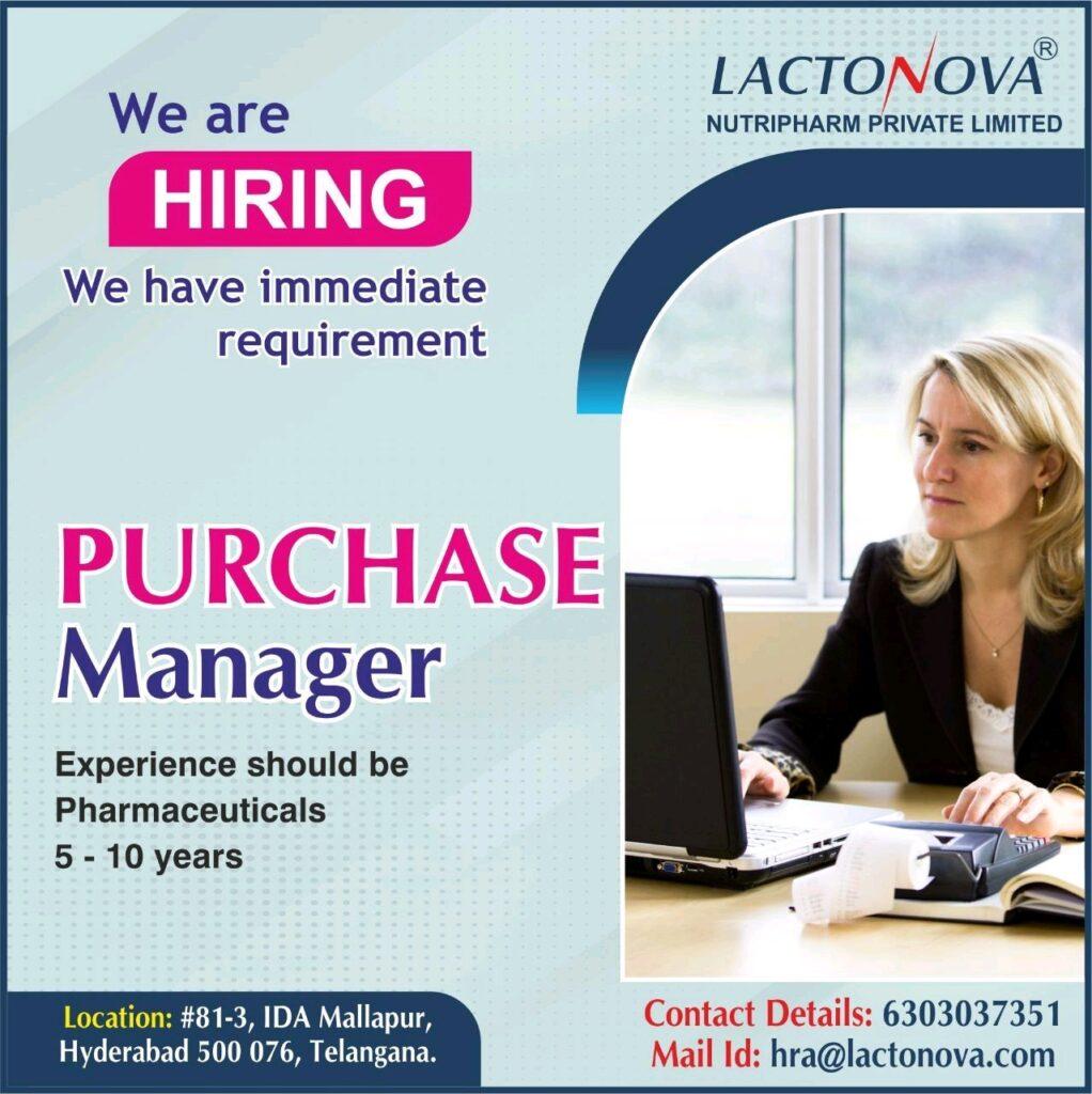 Lactonova Nutripharm hiring for Purchase Manager – Apply now
