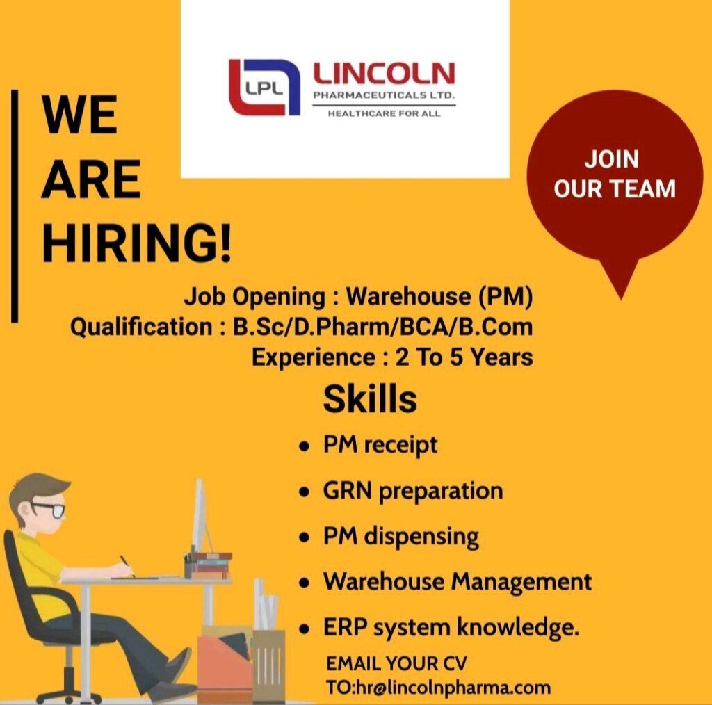 LINCOLN PHARMACEUTICALS Hiring for Warehouse (PM) department