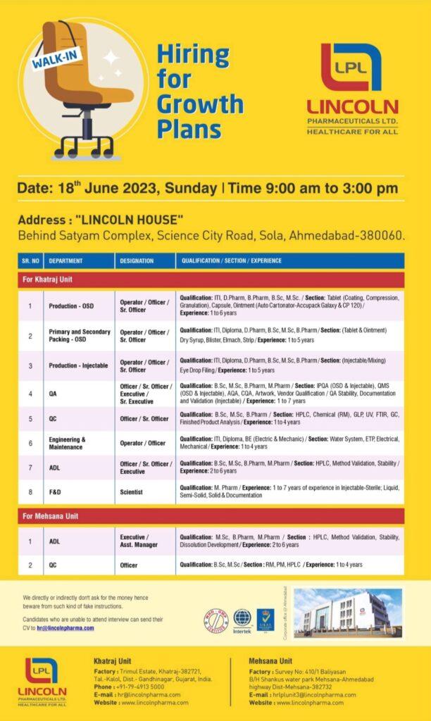Walk in Interview Date: 18th June 2023, Sunday