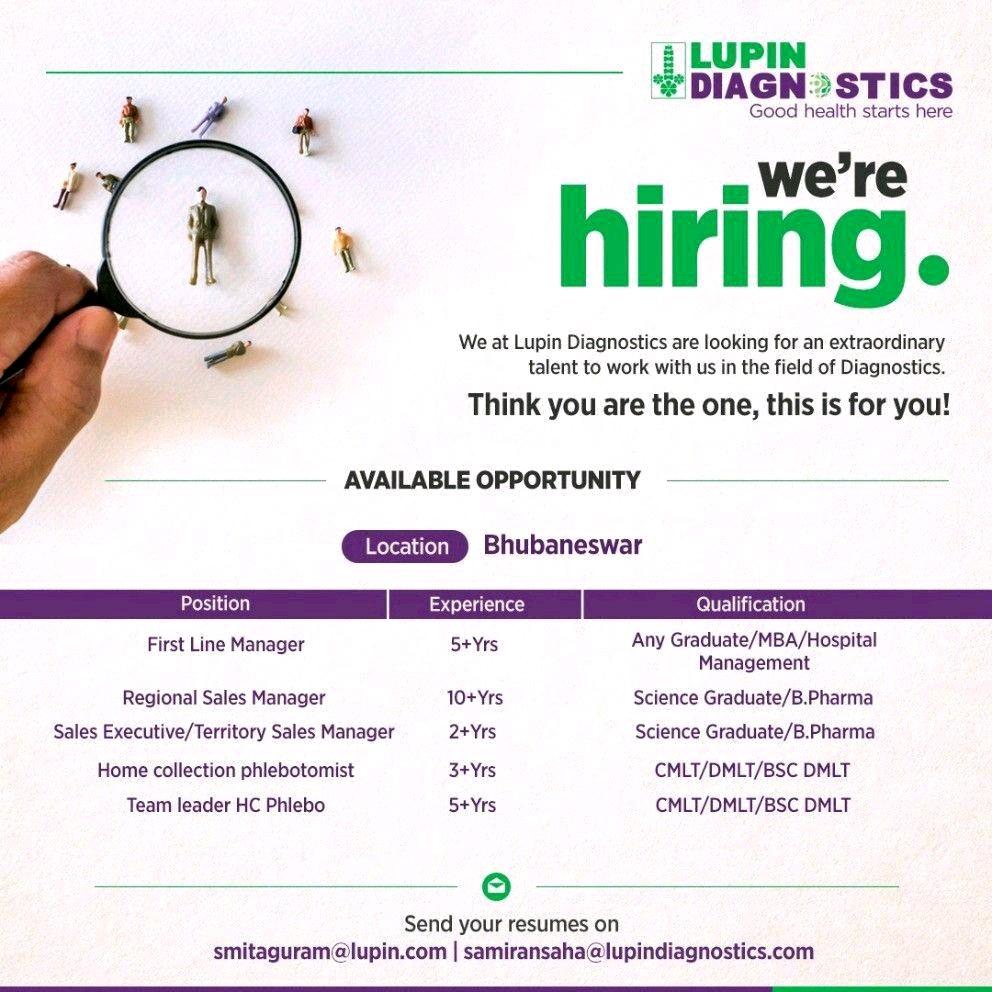 LUPIN DIAGNOSTICS multiple opening for Bhubaneswar location