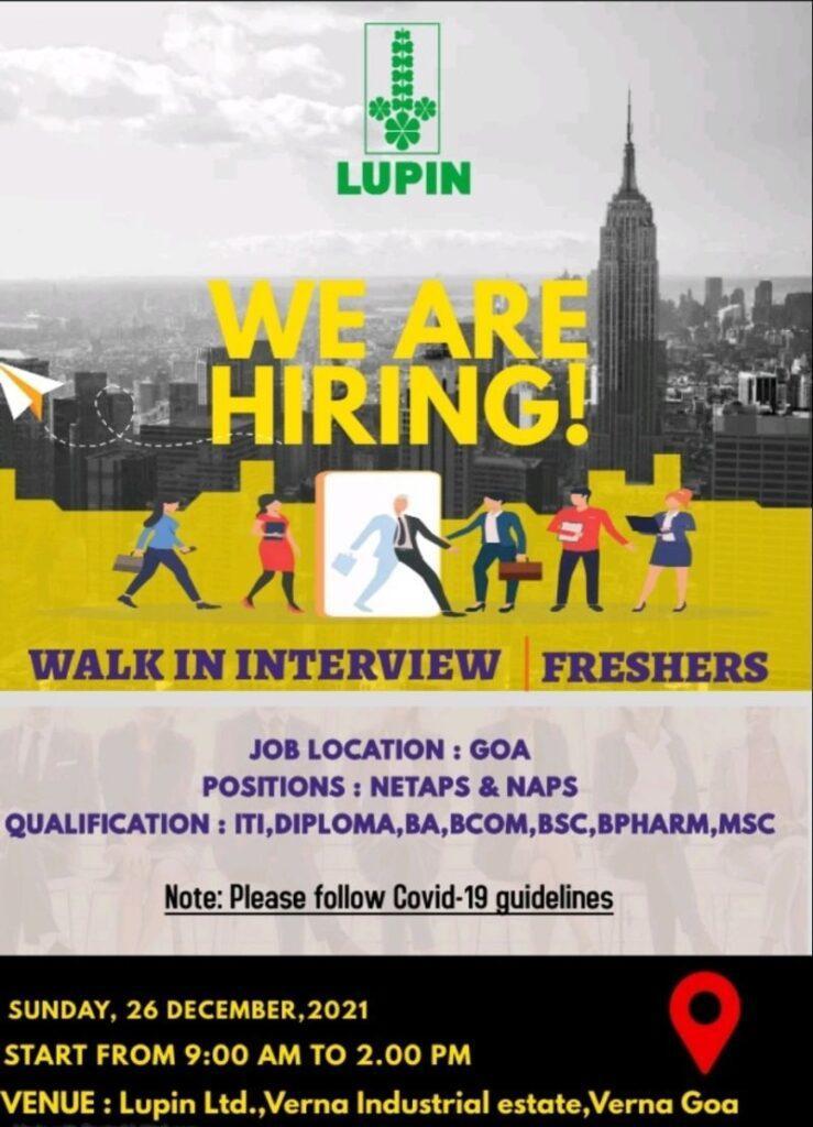 Lupin Limited, Walk-In Interviews for Freshers on 26th December 2021