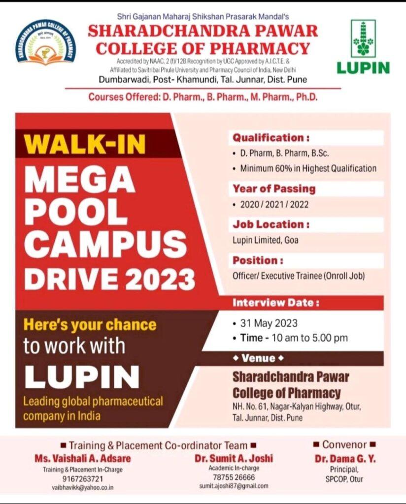 Lupin Ltd Walk In Mega Pool Campus Drive on 31 May 2023 at Pune