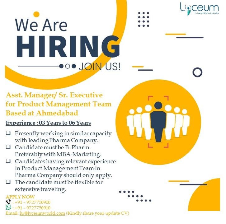 Lyceum Lifesciences Pvt Ltd hiring for Asst. Manager/ Sr. Executive for Product Management Team Based at Ahmedabad
