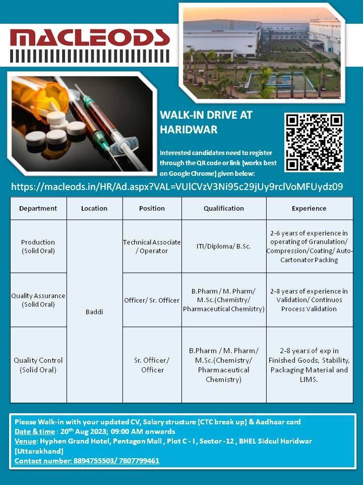 MACLEODS – Walk In Drive for Production (Solid Oral), Quality Assurance, Quality Control department on 20th Aug 2023