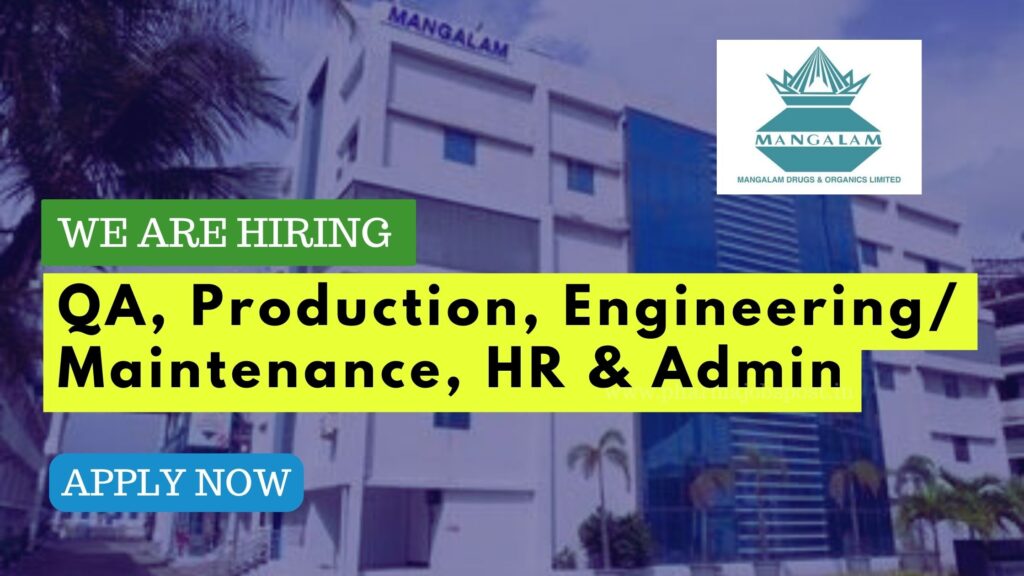 Mangalam Drugs and Organics hiring for QA, Production, Engineering/ Maintenance, HR & Admin department