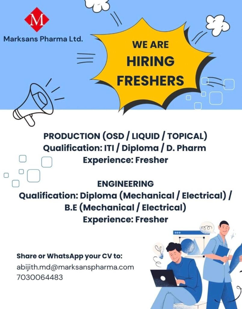 Entering the pharmaceutical sector as a fresher provides a strong foundation in quality standards, safety protocols, and advanced manufacturing technologies. Whether you are interested in the direct production of medicine or the engineering systems that make it possible, this recruitment drive offers a clear pathway into the industry.