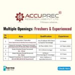- Experience: 2–8 years (IPQA, Validation, QMS, Lab QA, Documentation)