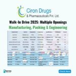 Marksans Pharma Ltd, a leading name in the pharmaceutical industry, is conducting a Walk-In Interview for multiple departments at its Goa facility (Verna Industrial Estate). This is a golden opportunity for experienced professionals in Production, Quality, Engineering, and related functions to join a reputed organization with a global presence.