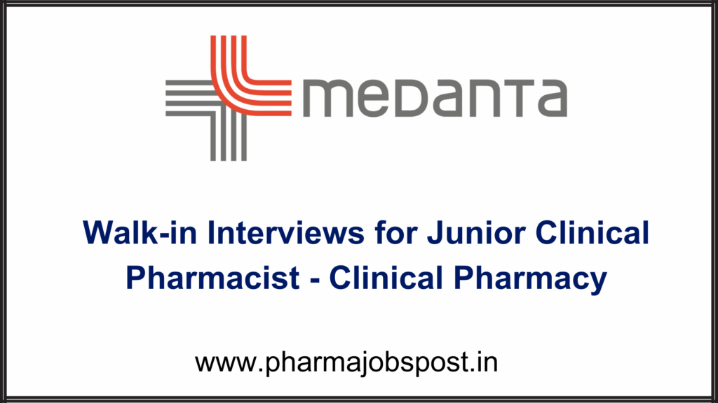 Medanta Walk-in Interviews for Junior Clinical Pharmacist – Clinical Pharmacy on 29th Nov – 08th Dec 2023