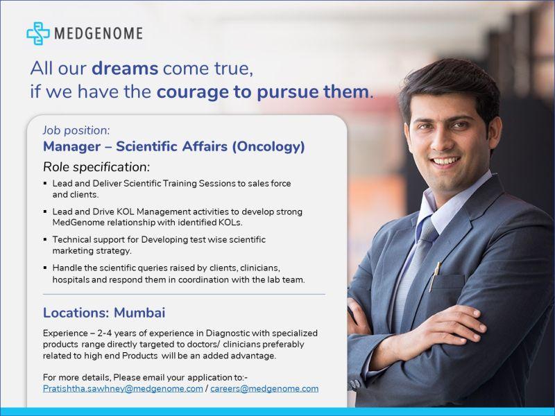 MEDGENOME hiring for Manager – Scientific Affairs department at Mumbai