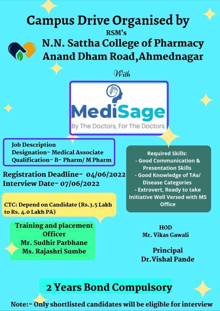MediSage Campus Drive for Freshers Medical Associate Jobs- Rs.3.5 Lakh to Rs. 4.0 Lakh PA