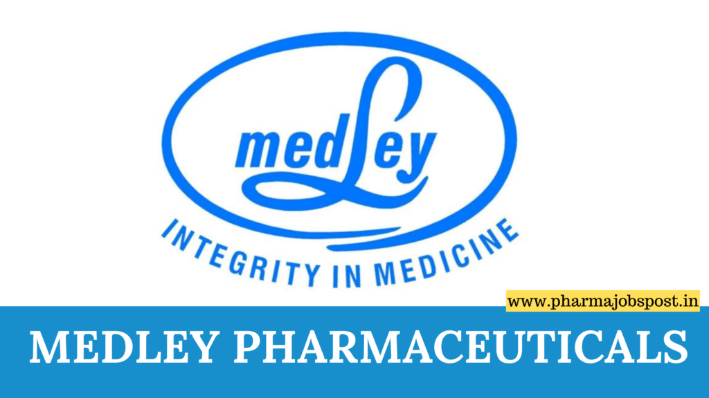 Interested candidates may attend Interview on 30th December 2023, Between 9 am to 2 pm at Medley Pharmaceuticals Ltd. Survey No. 378/7, 379/2 & 3, Zari Causeway Road, Kachigam, Daman (U.T): 396210.