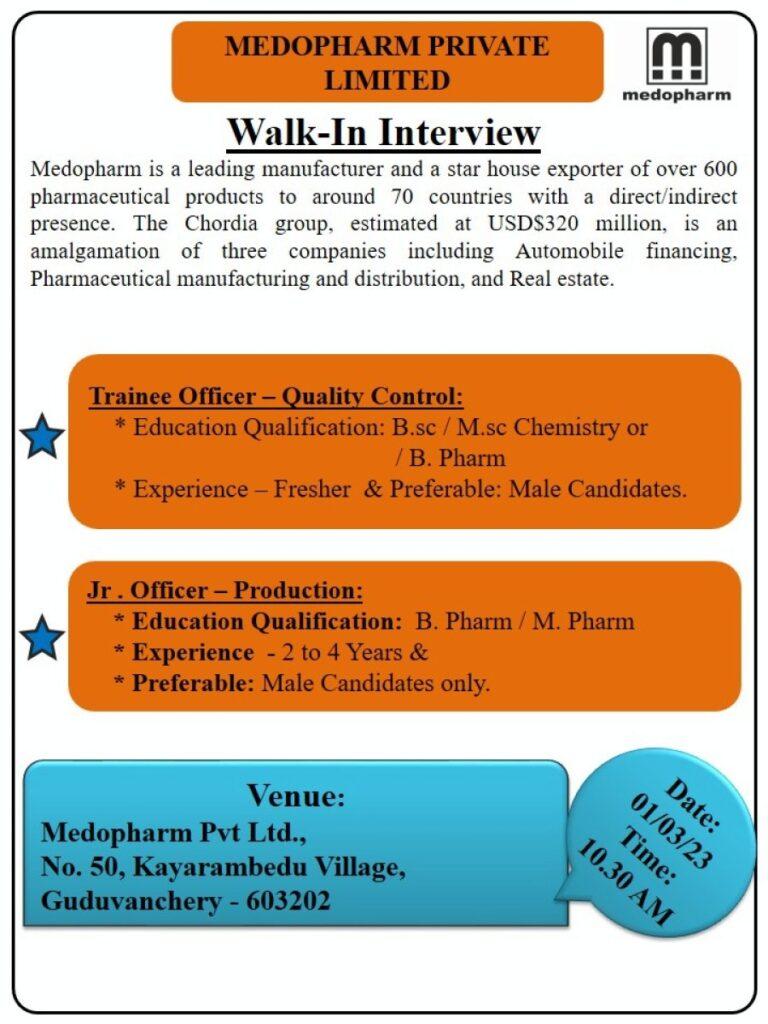 Medopharm- Walk In Interview for QC & Production on 01/ 03/ 23